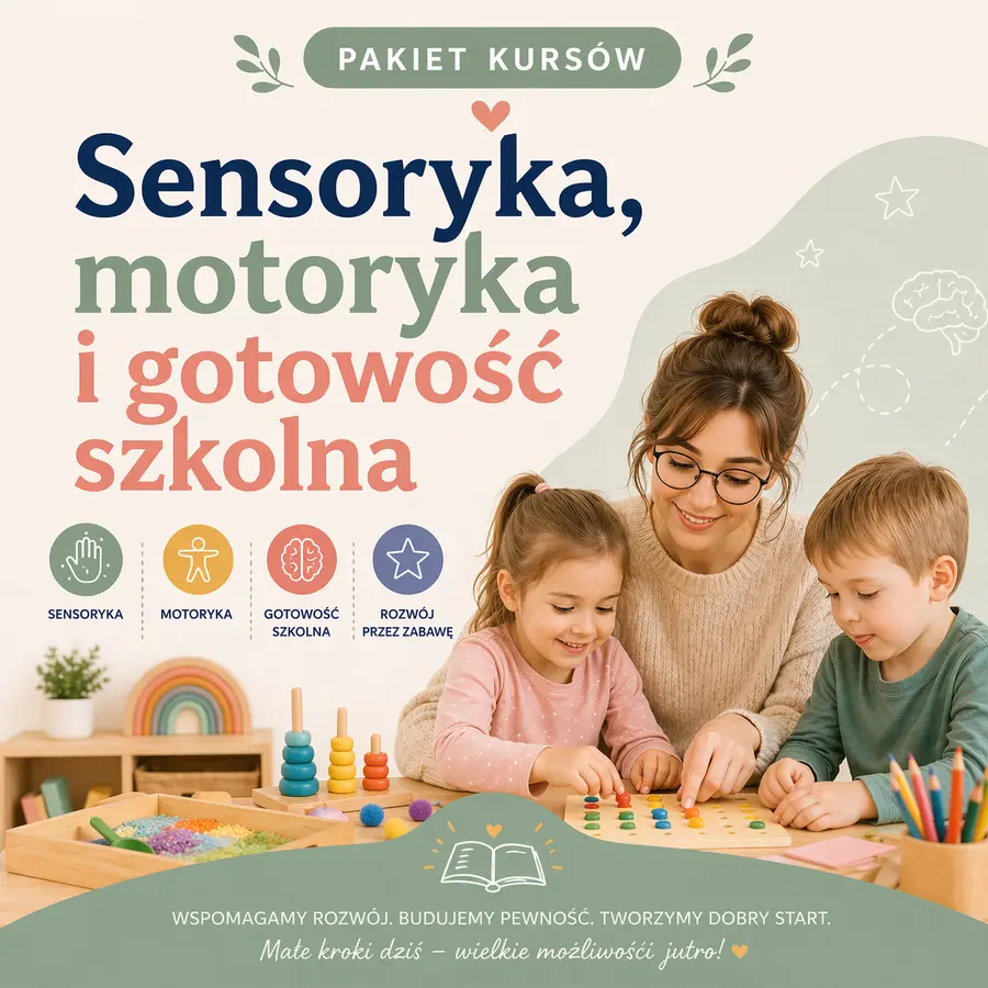Kompleksowa ścieżka dla nauczycielek, które chcą świadomie wspierać rozwój sensoryczny, ruchowy i manualny dzieci oraz przygotować je do gotowości szkolnej.